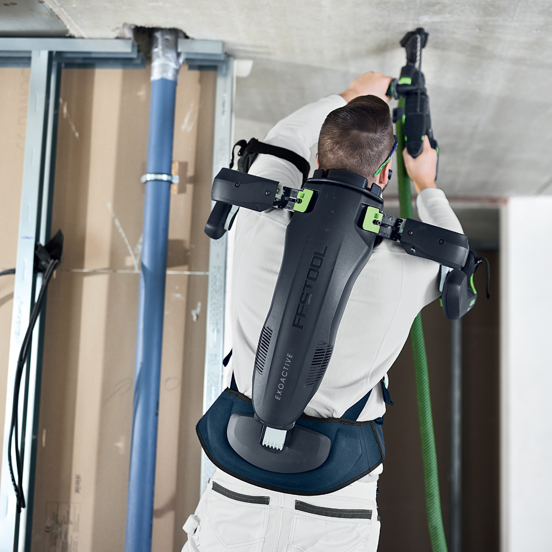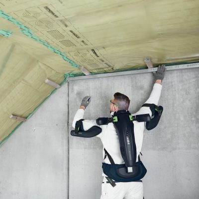 Con l’esoscheletro ExoActive di Festool d’ora in poi sarà facile svolgere i faticosi lavori sopra testa. Sia che si tratti di pareti in cartongesso o lavori di decorazione, tappezzeria o montaggio, su pareti o soffitti. Il nuovo esoscheletro è esclusiva di Gruberg in tutta la provincia di Bergamo ed è il primo attivo al mondo.